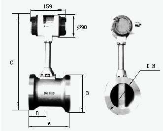 為了確保儀表正常、準確運行,渦街流量計安裝點的上下游須有一定的直管道,以調(diào)整流場,如圖所示。