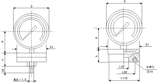 注:0~40,-40~0,±20KPa規(guī)格承壓部尺寸D1;為φ85 |